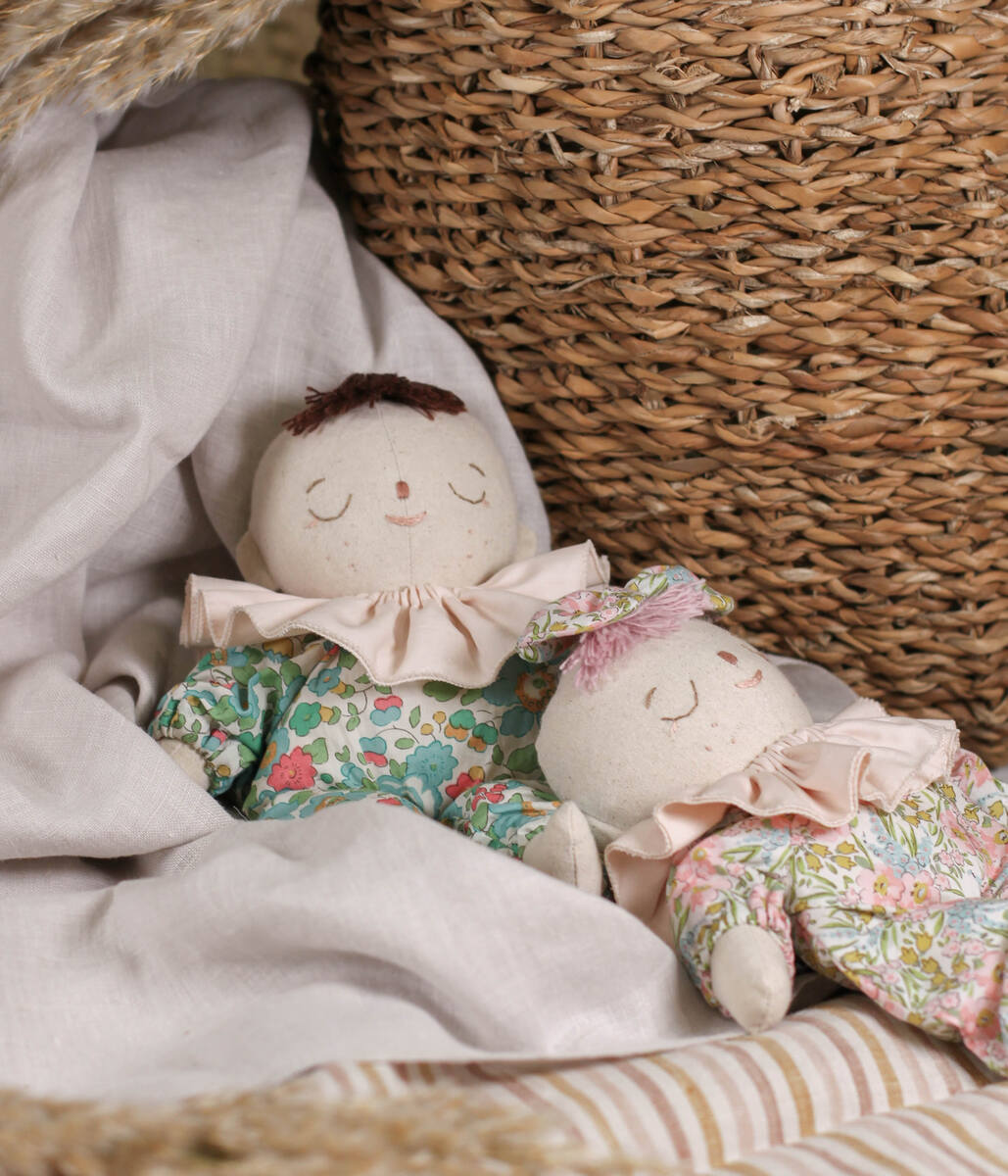 Naše lutke pažljivo se izrađuju prema originalnom kroju, sa posebnom posvećenošću svakom detalju. Tijelo im je od visokokvalitetnog, nebijeljenog organskog pamuka, a punjene su čvrstom češljanom vunom. Lice svake lutke ručno je izvezeno s mnogo strpljenja i ljubavi, pa preporučujemo da ih nježno koristite i izbjegavate povlačenje končića.